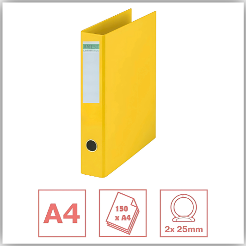AMEST Heavy Duty 2-Ring Binder File–1 Inch Spine, Holds Up to 150 A4 Sheets - Yellow