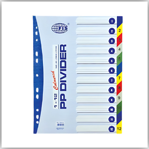 Organize your documents efficiently with these A4-sized plastic dividers, numbered 1 through 12. Each divider is color-coded for quick identification, enhancing your filing system's clarity and accessibility. Durable and designed for frequent use, they provide a professional solution for categorizing reports, presentations, or records. Ideal for office, school, or personal use, these dividers streamline document management and improve workflow.