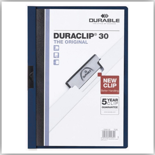 DURACLIP 30 A4 Clip Folder | Holds Up-to 30 Sheets of A4 Paper | Robust Metal Sprung Clip | Pack of 25 Dark Blue Colored Files