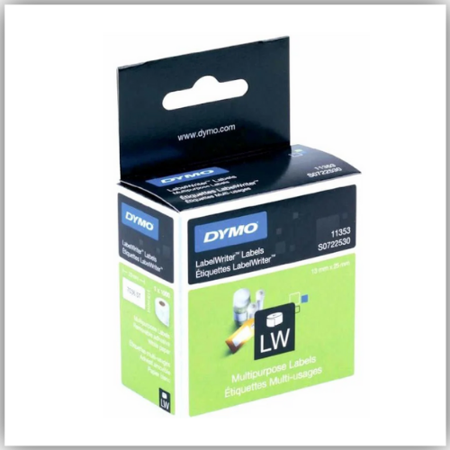 DYMO (11353) Multipurpose Labels (2 up), White Paper, 25 x 13 mm, [1000 Labels/Roll]