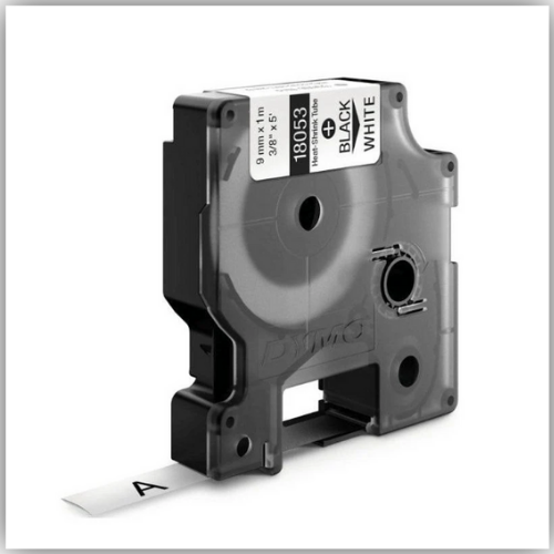 Dymo 18053 Heat Shrink Tube, 9mm, Black On White
