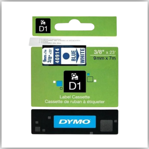 Dymo 40914, D1 Tape,9mm x 7m, Blue on White