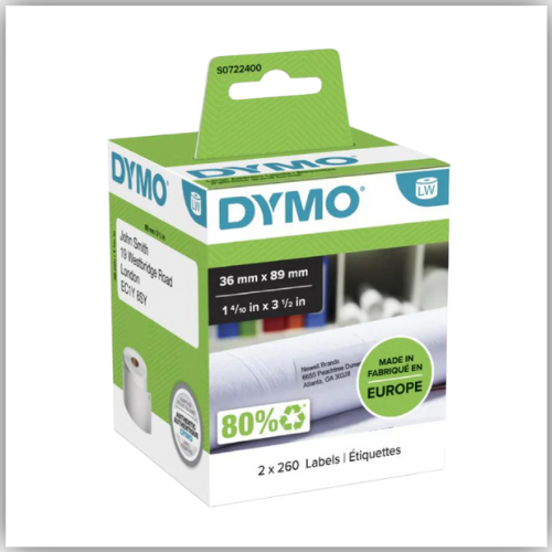 DYMO (99012) Large Address Labels, White Paper, 89 x 36 mm, [2X260 Labels/Roll]