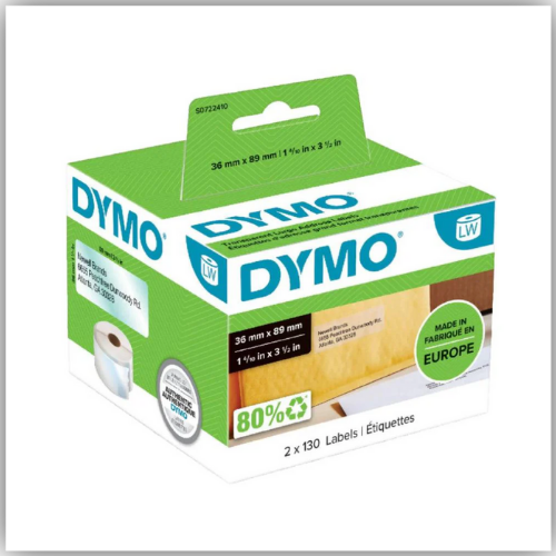 DYMO (99013) Large Address Labels, Transparent Plastic, 89 x 36 mm, [260 Labels/Roll]