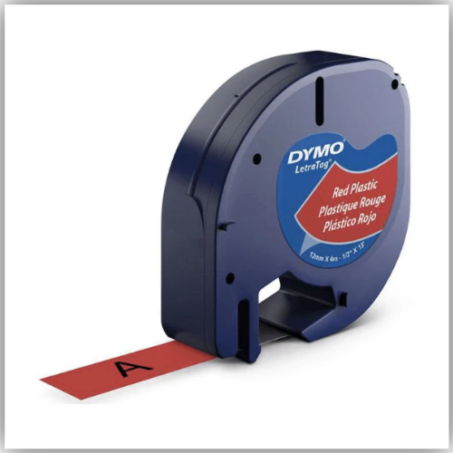 Dymo LetraTag Plastic Tape, 12mm X 4m, [Red - 91203]