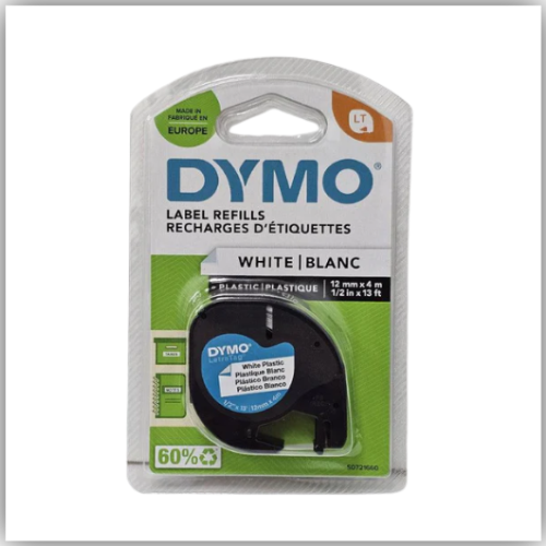 Dymo LetraTag Plastic Tape, 12mm X 4m, [White - 91201]