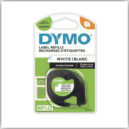 Dymo LetraTag Tape, 12mm X 4m, [Paper White - 91200]