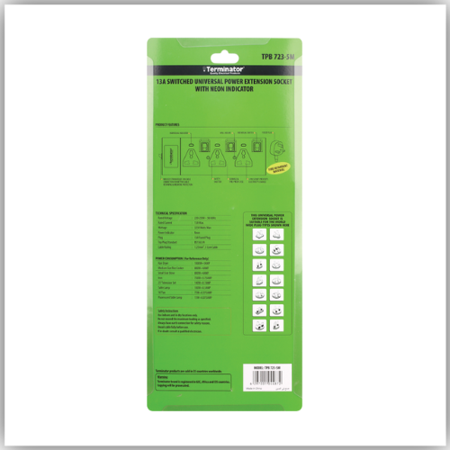 Description: 3-Way Universal Power Extension Socket With Individual Switch & Indicator