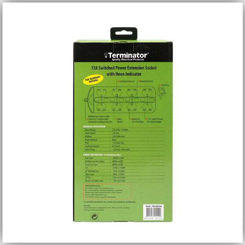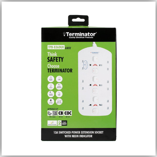 Extension Lead 6 Way Double Side UK With Individual Switches 3M - TPB-836DUK