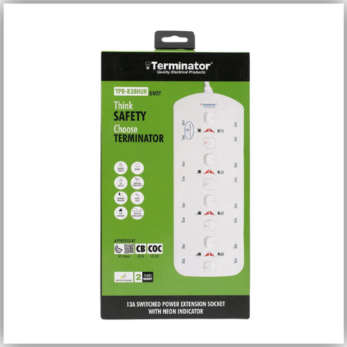Extension Lead 8 Way Double Side UK With Individual Switches 3M - TPB-838HUK