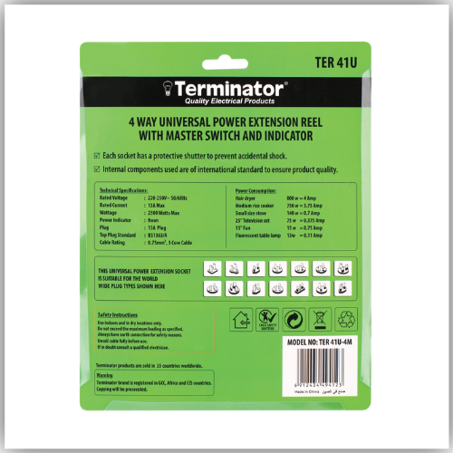 Extension Reel 4 Way Socket 4M - TER 41U-4M