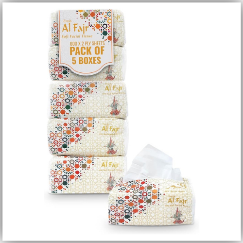 - Soft Comfort: Al-Fajr facial tissues are made of ultra-soft nylon material for gentle wiping and dabbing without irritation.