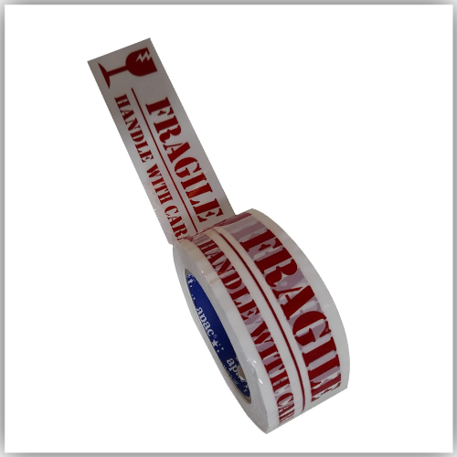 - High quality reliable shipping packing tape with "Fragile Hand with Care" printed on it.