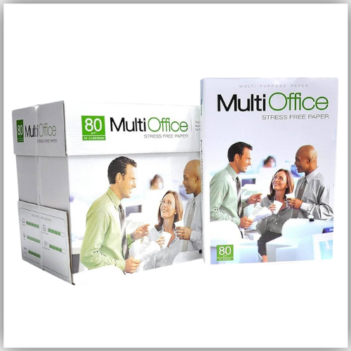 MULTIOFFICE Copier Paper A4 80gsm comes in a convenient box of 5 reams, ideal for high-volume printing and copying needs. This premium-quality paper ensures crisp, clear text and sharp images, enhancing the professionalism of your documents. Its 80gsm weight provides a reliable thickness that prevents ink bleed-through while maintaining smooth feeding through all types of copiers and printers. Perfect for office environments, this paper supports efficient workflow and consistent output quality.