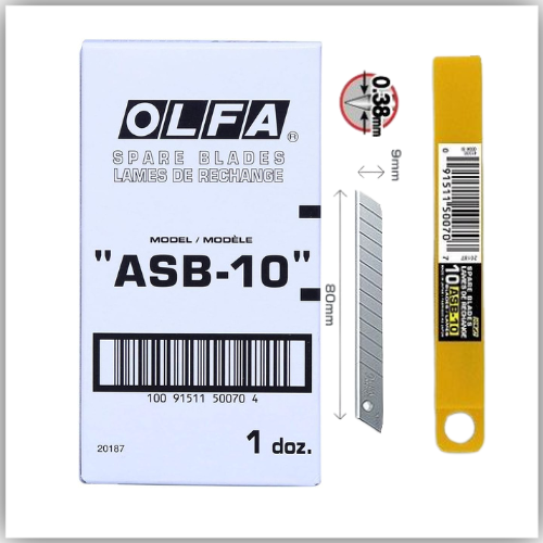 Olfa ASB-10 Spare Blades offer precise cutting performance with their 9mm by 80mm dimensions, ideal for detailed work. Each pack contains 10 high-quality blades designed for durability and sharpness, ensuring clean, accurate cuts every time. These blades are compatible with a range of Olfa cutters, making them a reliable choice for professionals seeking consistent results in crafting, design, or industrial applications.
